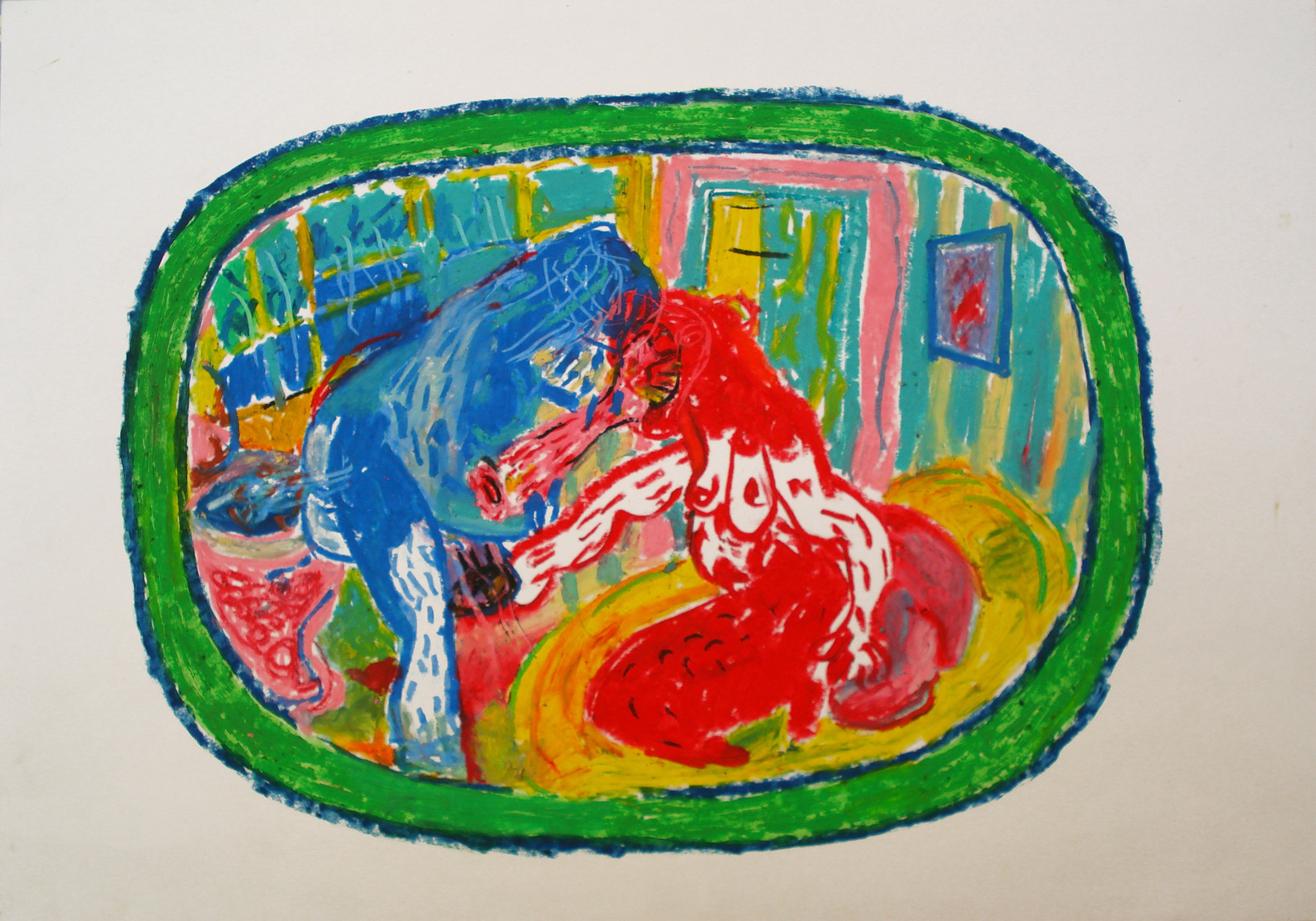Toda la cosmética en el ovalo: una armoniosa composición de colores, o en fin eyaculaciones, violaciones, defecaciones, suicidios, homicidios, y el placer turístico de quien entrecierra los ojos y disfruta el arco iris de tonalidades de una masacre.